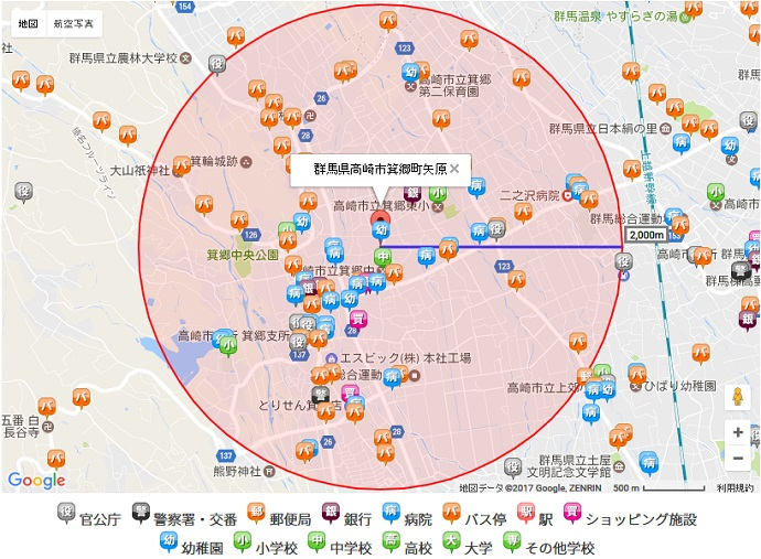 【高 校】 高崎北高校 (4,300m) 徒歩53分