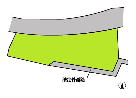 公営水道、合併浄化槽、プロパンガス、現況渡し、建築不可(接道要件を満たしていない為)、がけ地条例、上水道本管南側約200m先にあり、※本件土地と北側道路は高低差があるため現状出入り不可 |